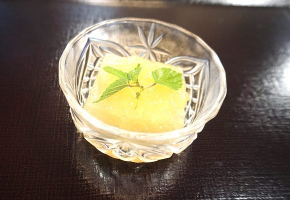 メインに合わせて、デザートはさっぱりと。 レモン風味のゼリーに甘いシロップを注いだ、台湾風のゼリーです。