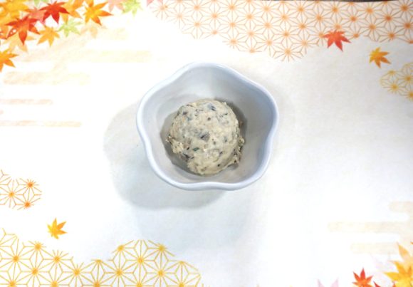 旬の里芋・キノコと、クリームチーズ・アンチョビを混ぜ合わせたマッシュサラダです。