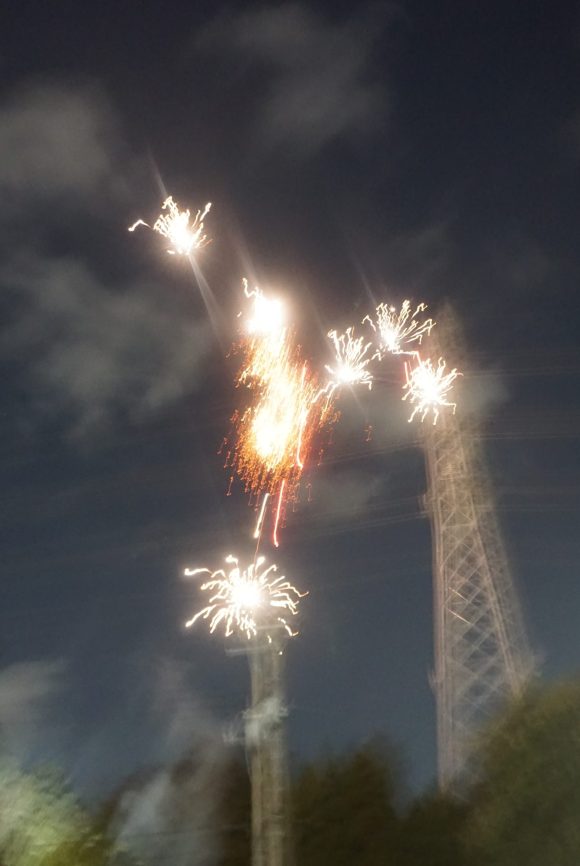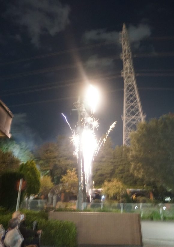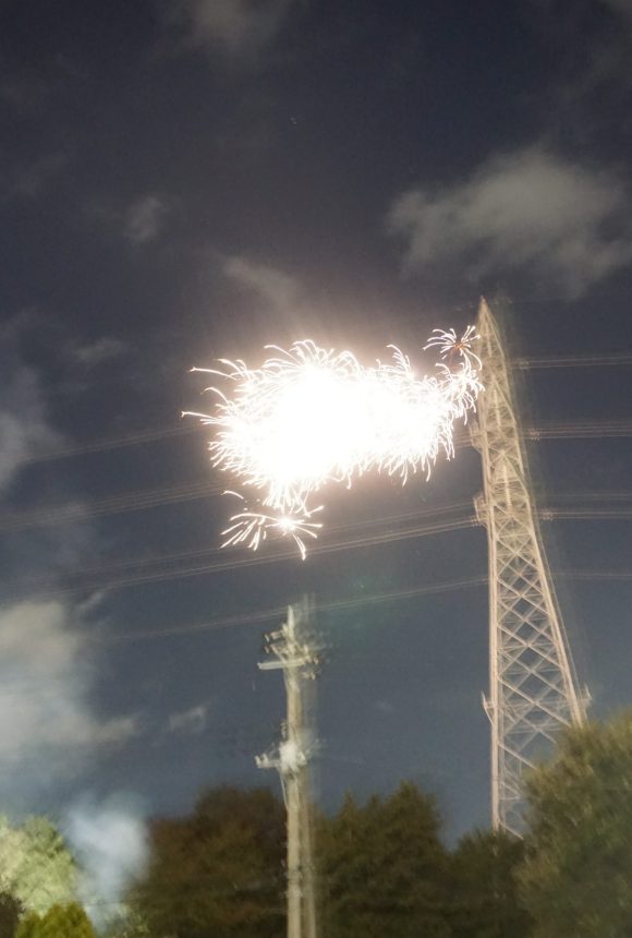 お待ちかね、打ち上げ花火のスタートです! 「始まりまーす!」の施設長の合図でまずは一発目!