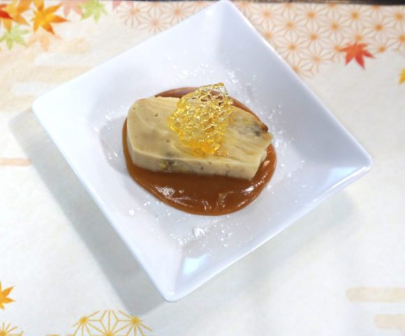 梨をゼリーにして、すだちを使ったジュレをのせました。 梨もすだちも今が旬です。 とてもさわやかなデザートにしました。