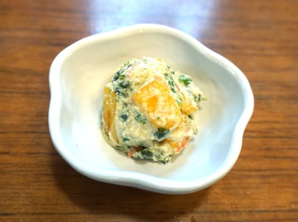 白和えは旬の柿を使って、少し甘めにしました。