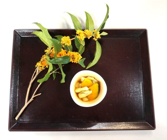 白身魚となめこのかぶら蒸しを小鉢にしました。