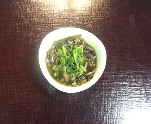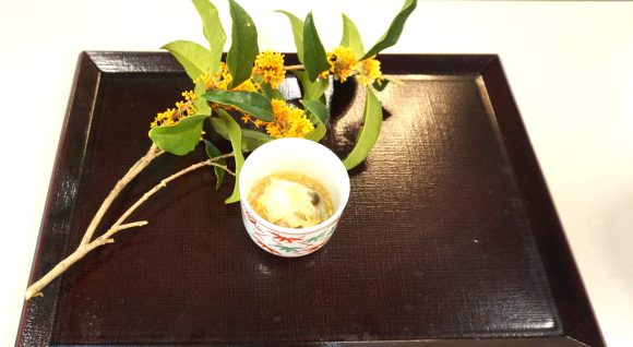 わかめ、手毬麩、三つ葉の入ったすまし汁です。