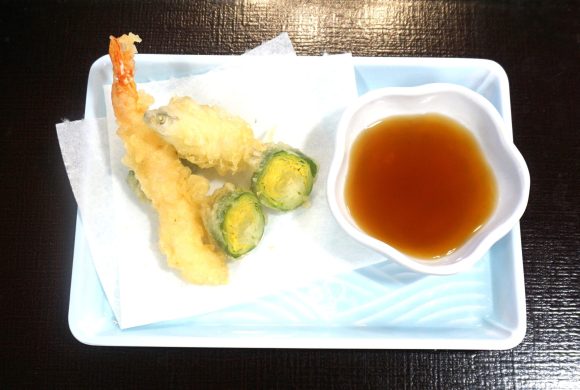 海老と旬のワカサギ、芽キャベツを天ぷらにしました。